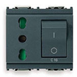 Gniazdo 2P+E, 10A, P17/11, z wyłącznikiem C16, 2M, antracyt